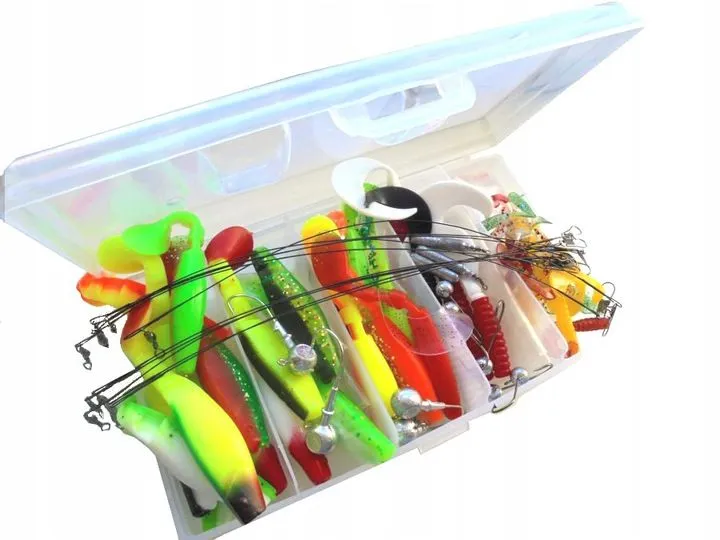 - Wiele zestawów oferuje różnorodną kolorystykę, co pozwala dostosować przynęty do warunków wodnych.